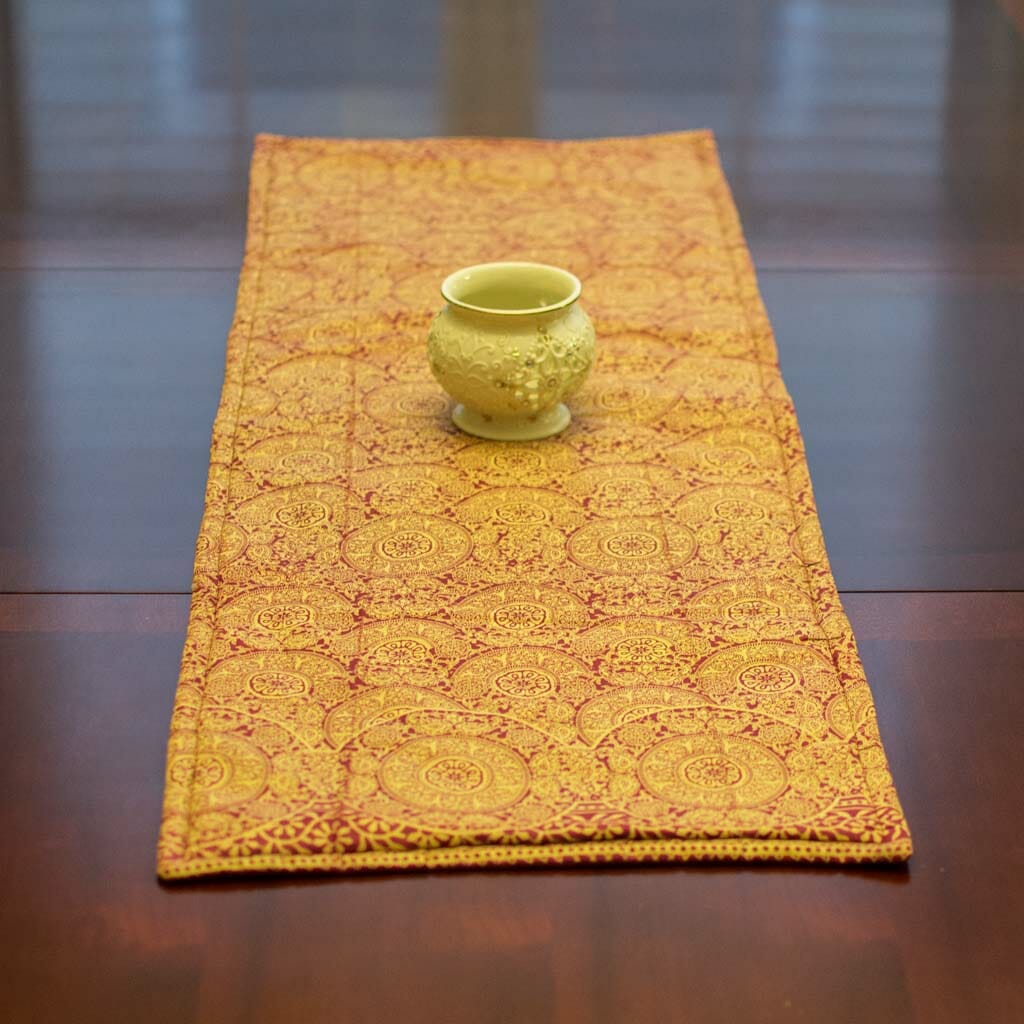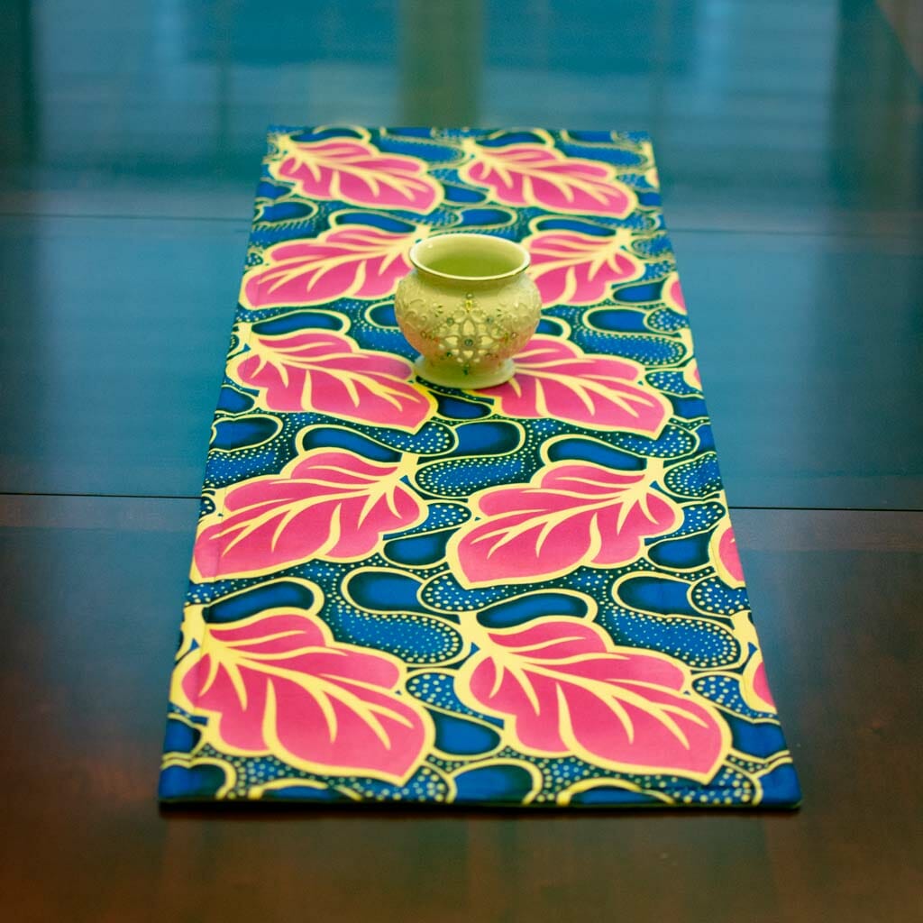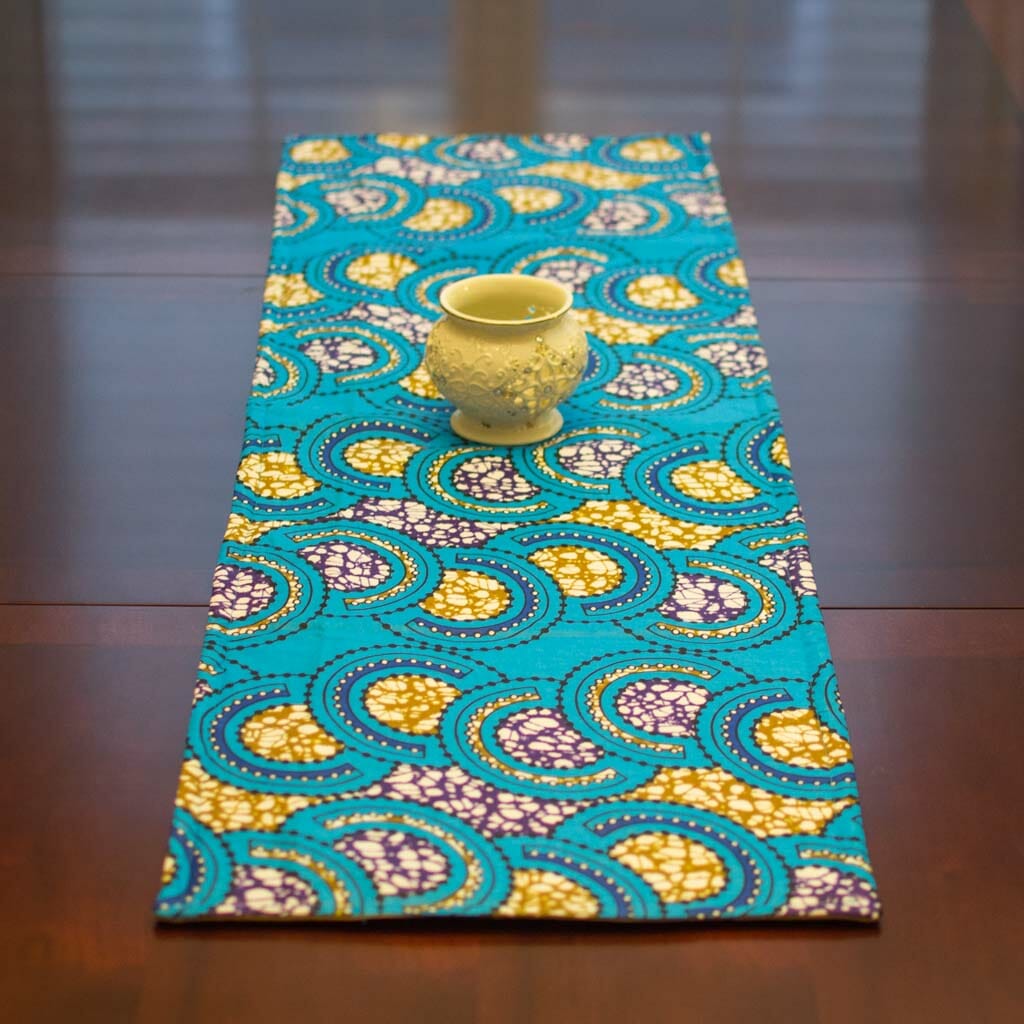 This 42″ x 14″ table runner makes a beautiful decorative addition to your home decor. Handmade from authentic African kitenge fabric, with cotton and Insulbright lining. Assorted styles available.